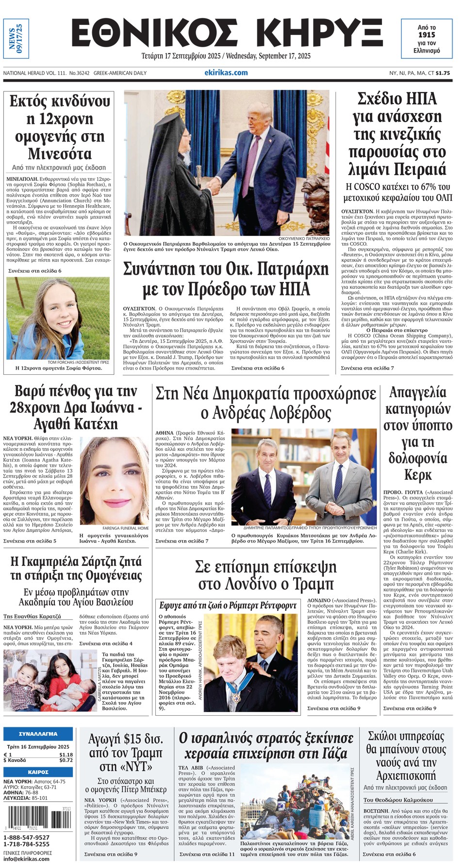 ΕΘΝΙΚΟΣ ΚΗΡΥΞ - 17 Σεπτεμβρίου 2025