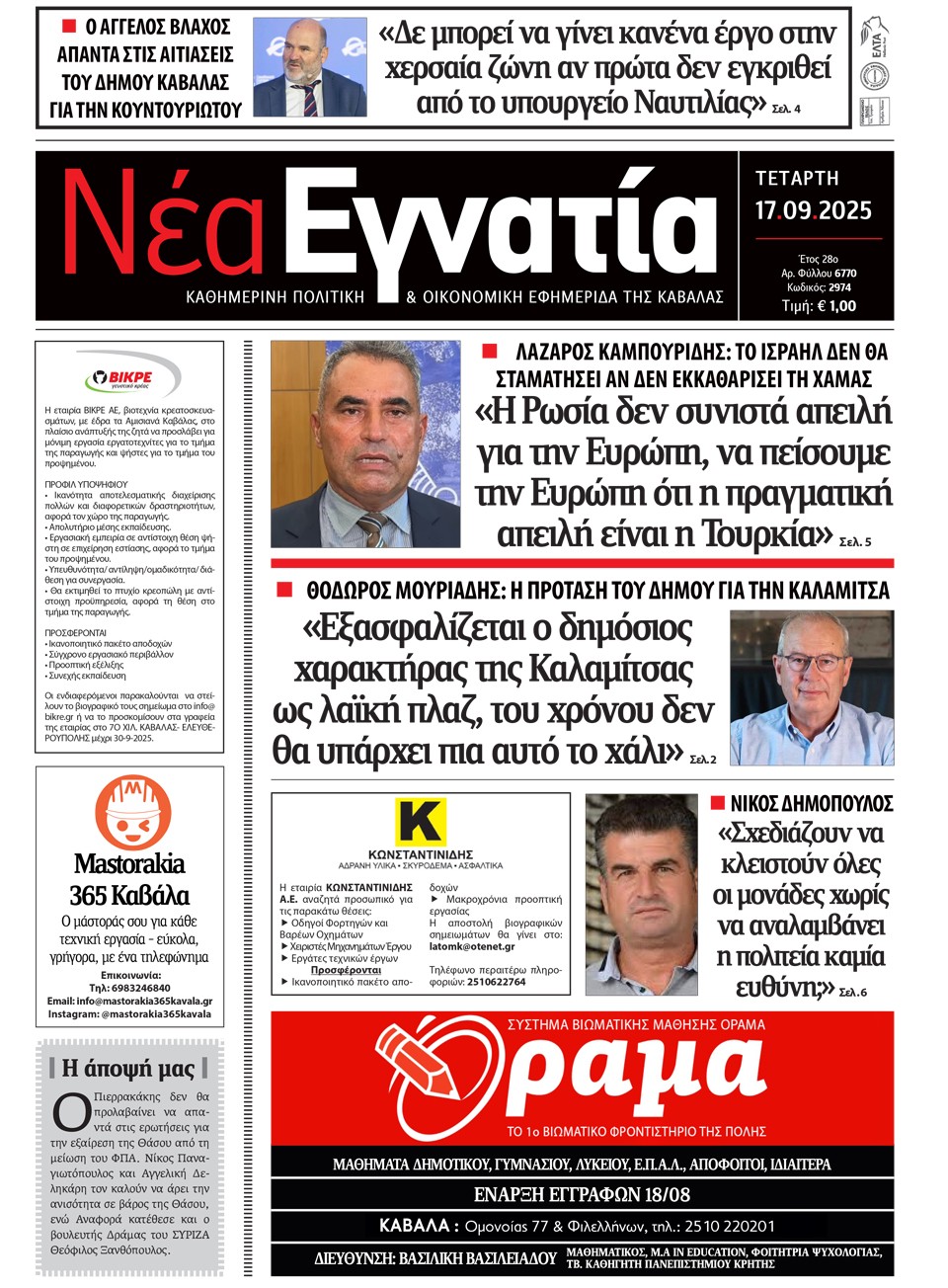 ΝΕΑ ΕΓΝΑΤΙΑ - 17 Σεπτεμβρίου 2025
