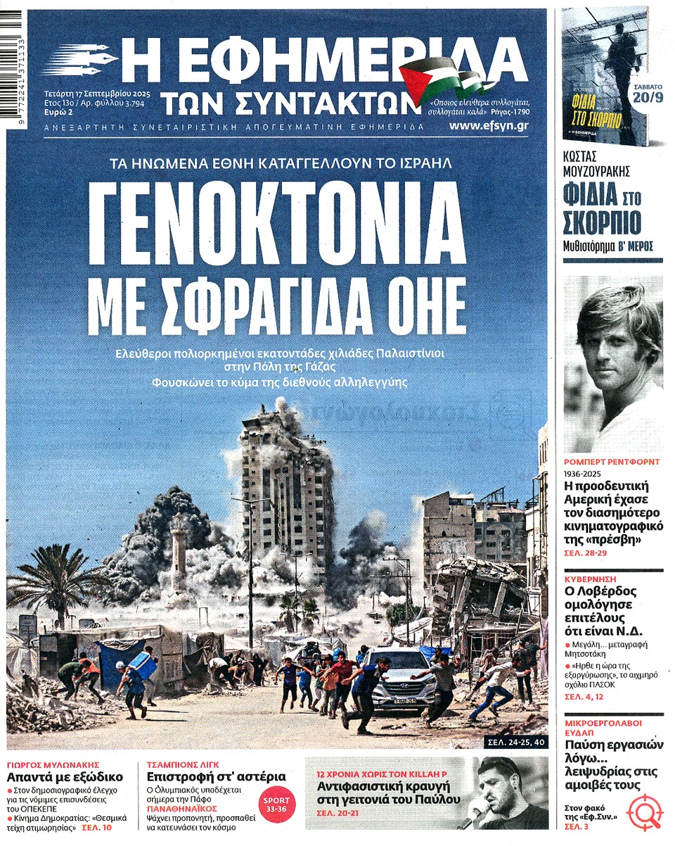 Η ΕΦΗΜΕΡΙΔΑ ΤΩΝ ΣΥΝΤΑΚΤΩΝ - 17 Σεπτεμβρίου 2025