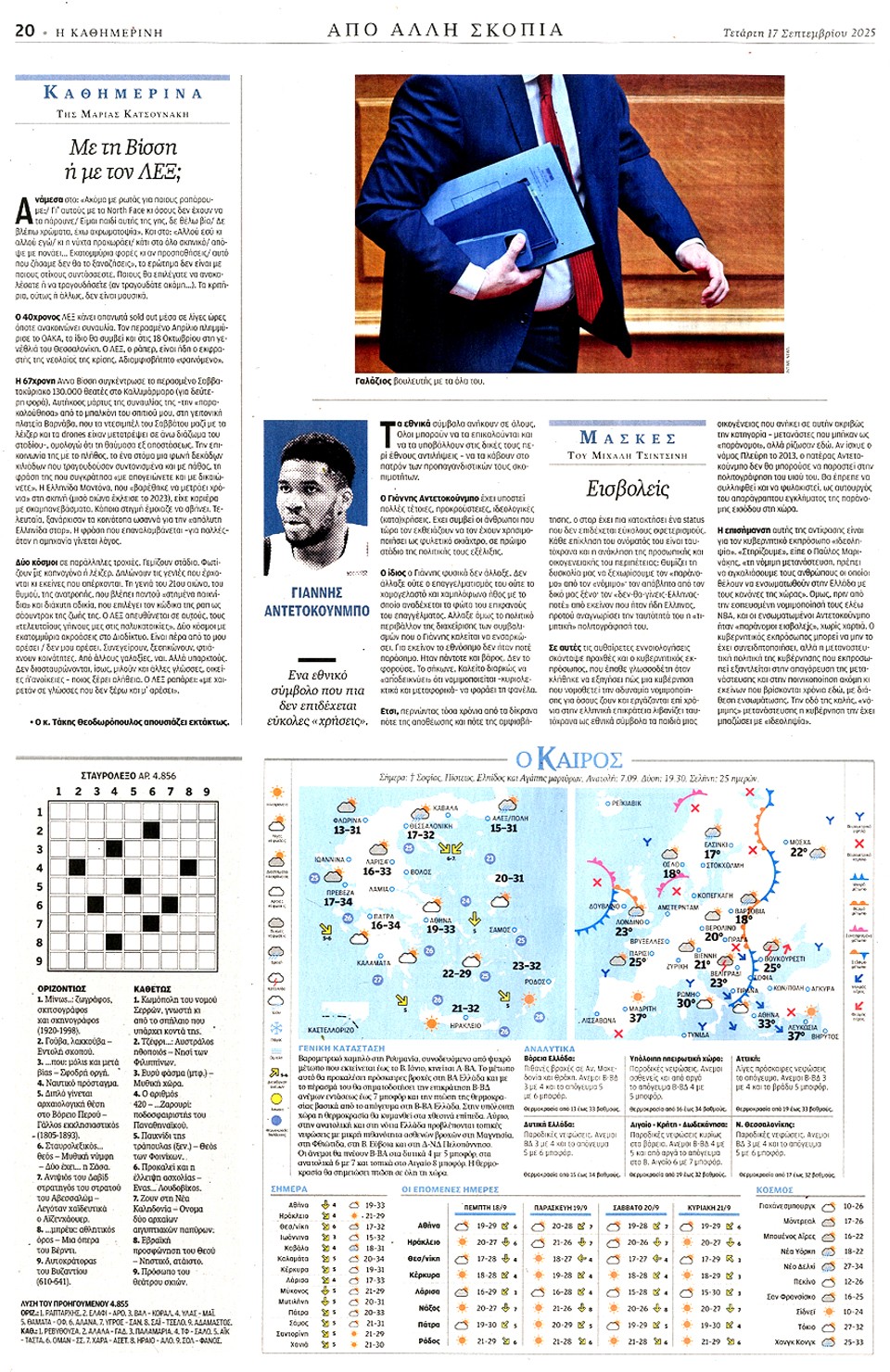 ΚΑΘΗΜΕΡΙΝΗ - 17 Σεπτεμβρίου 2025