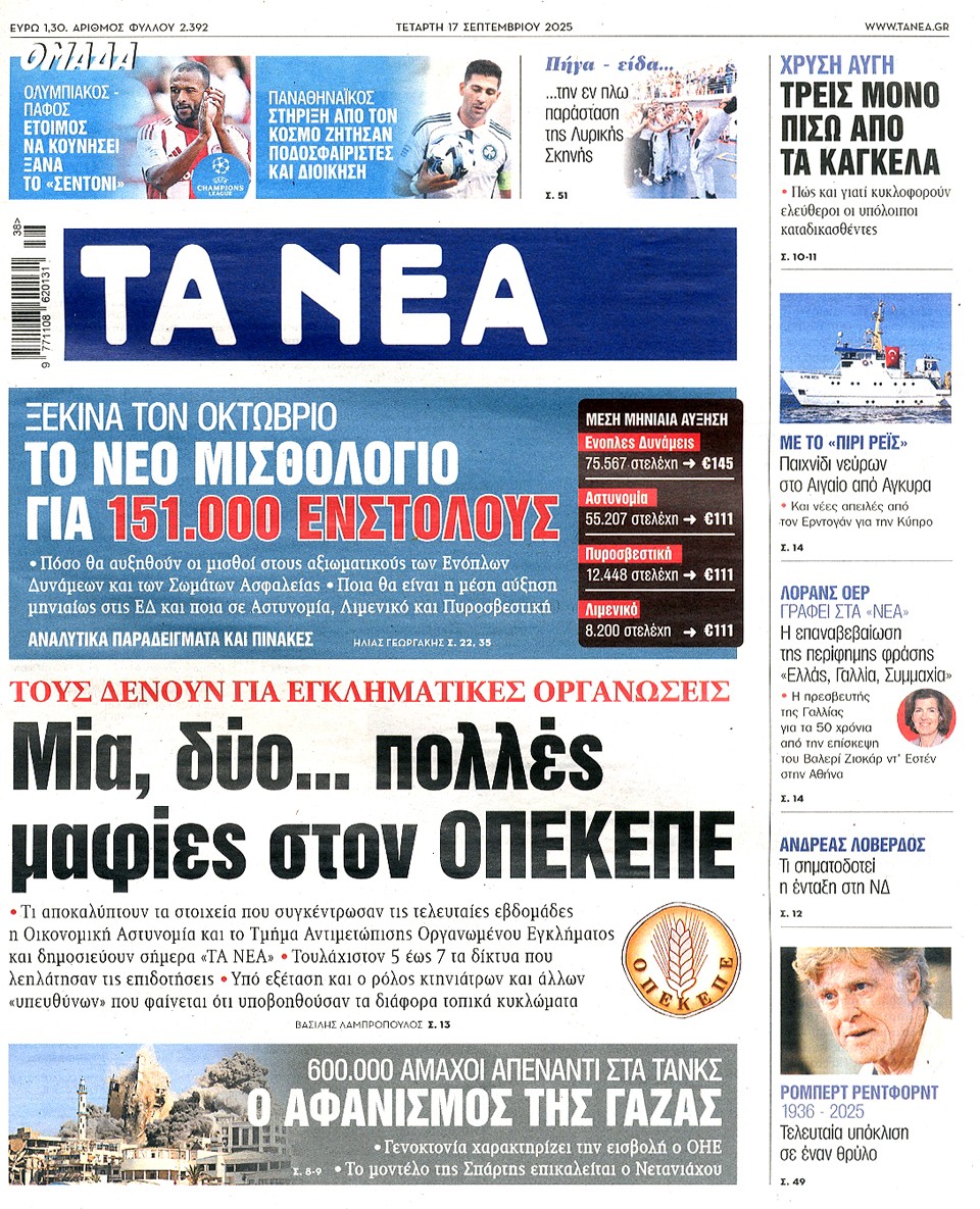 ΤΑ ΝΕΑ - 17 Σεπτεμβρίου 2025