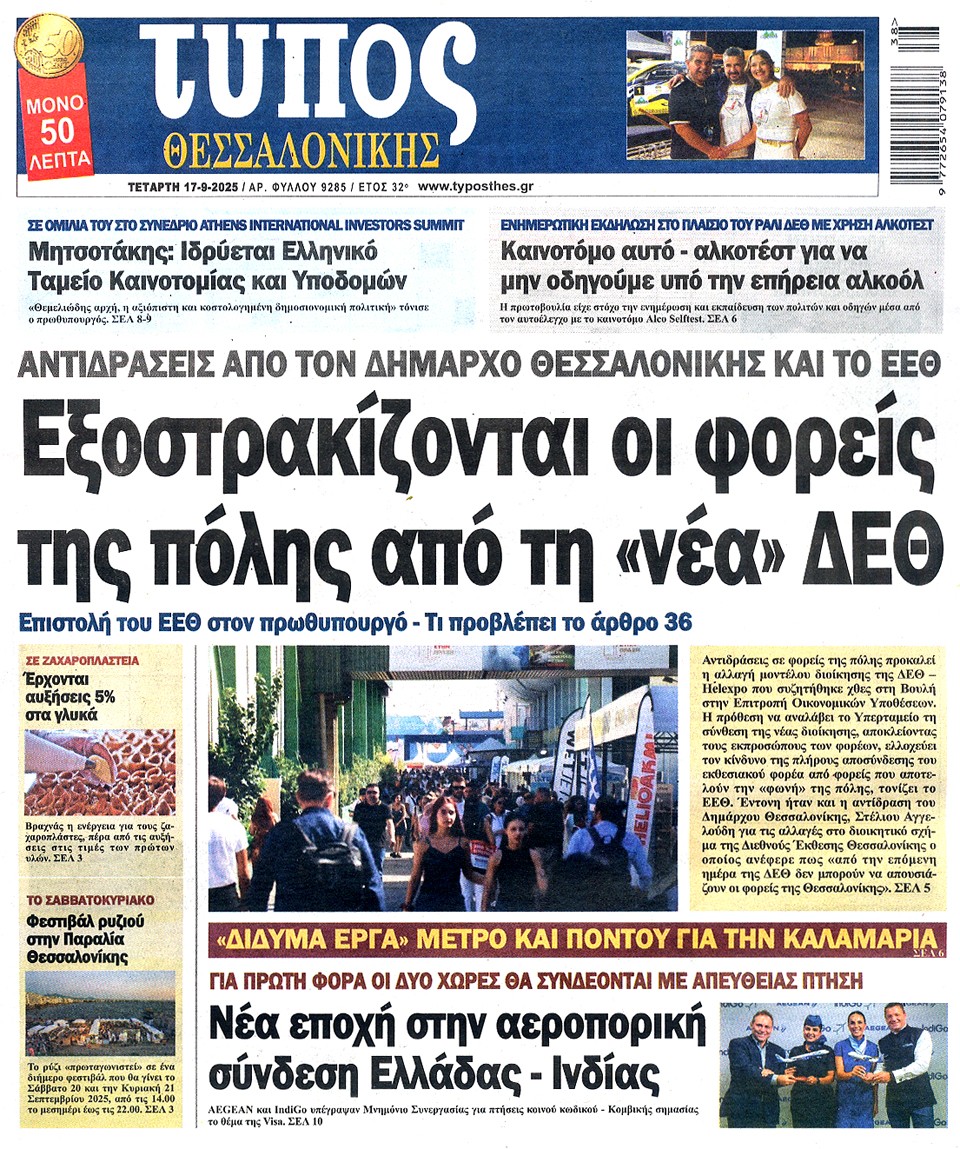 ΤΥΠΟΣ ΘΕΣΣΑΛΟΝΙΚΗΣ - 17 Σεπτεμβρίου 2025