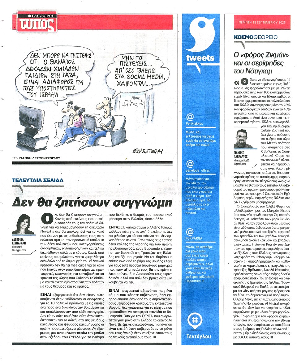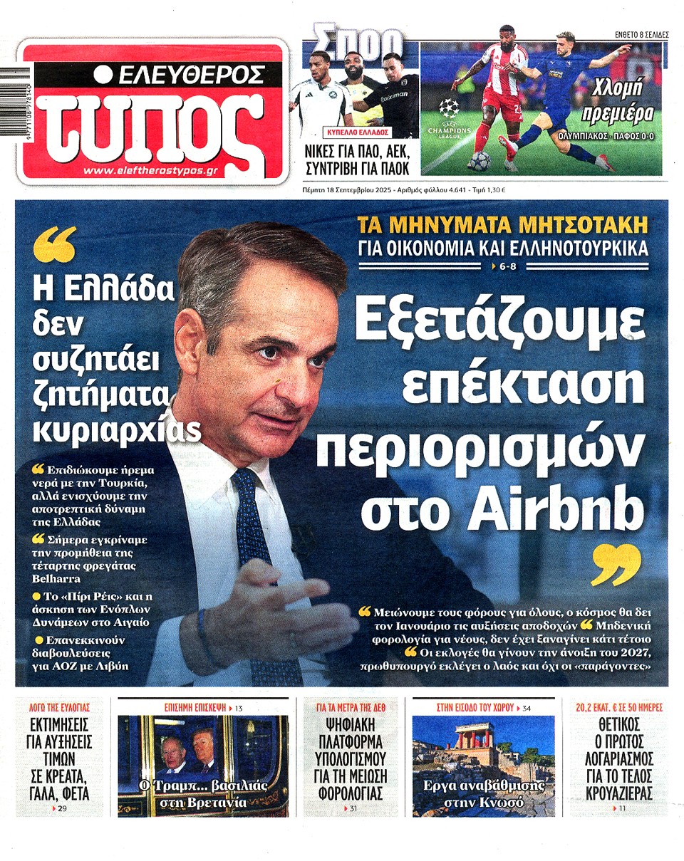 ΕΛΕΥΘΕΡΟΣ ΤΥΠΟΣ - 18 Σεπτεμβρίου 2025