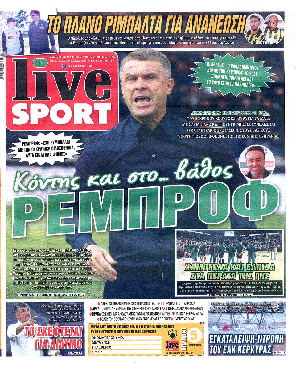 LIVE SPORT - 19 Σεπτεμβρίου 2025
