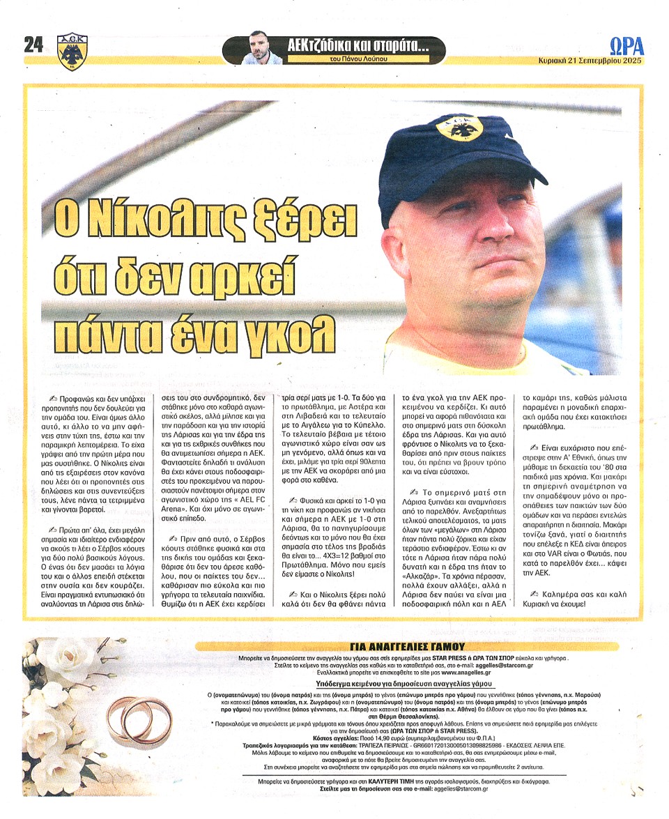 ΑΘΛΗΤΙΚΗ ΩΡΑ ΤΩΝ ΣΠΟΡ - 21 Σεπτεμβρίου 2025