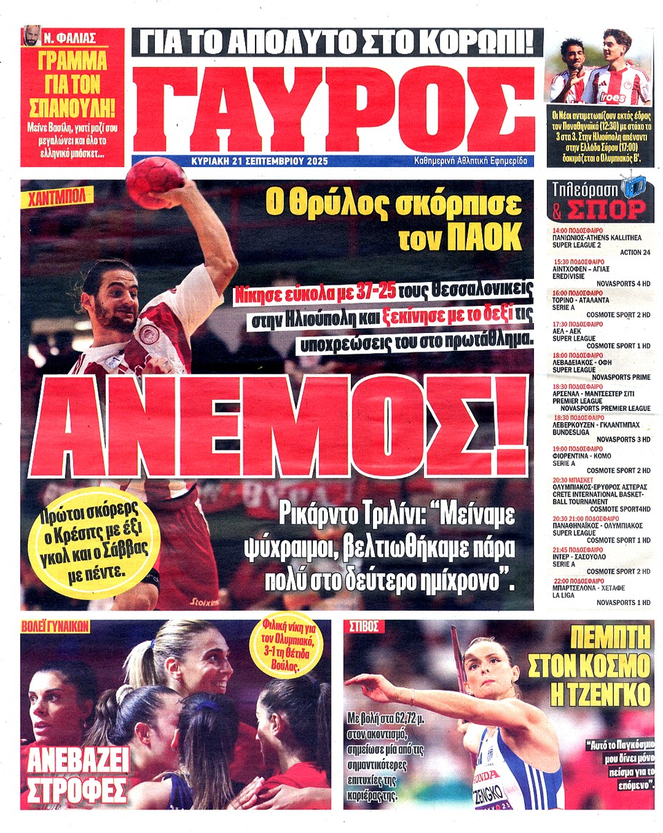 ΠΡΩΤΑΘΛΗΤΗΣ - 21 Σεπτεμβρίου 2025