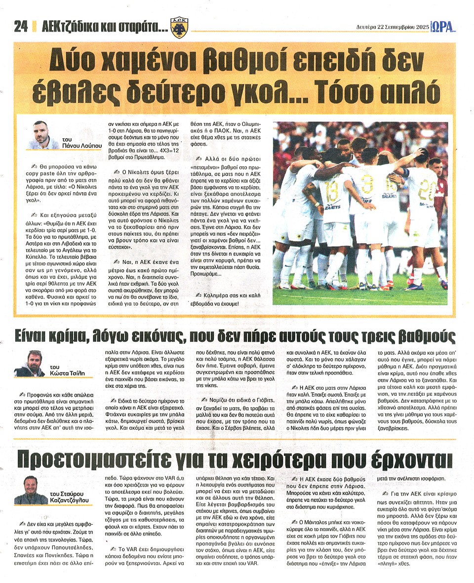 ΑΘΛΗΤΙΚΗ ΩΡΑ ΤΩΝ ΣΠΟΡ - 22 Σεπτεμβρίου 2025