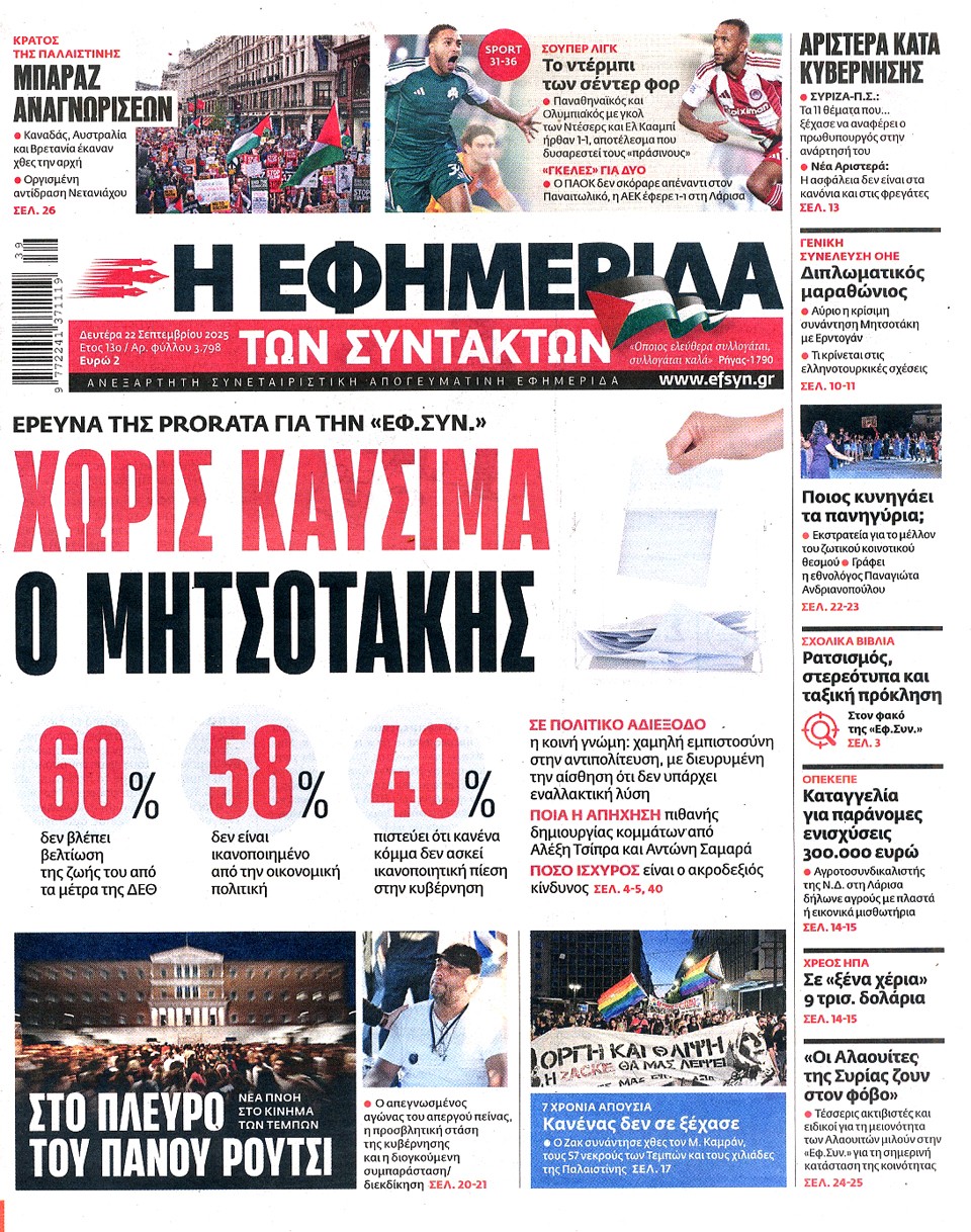 Η ΕΦΗΜΕΡΙΔΑ ΤΩΝ ΣΥΝΤΑΚΤΩΝ - 22 Σεπτεμβρίου 2025