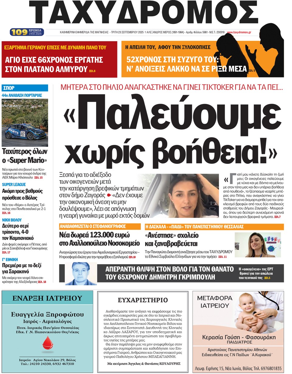 ΤΑΧΥΔΡΟΜΟΣ - 23 Σεπτεμβρίου 2025