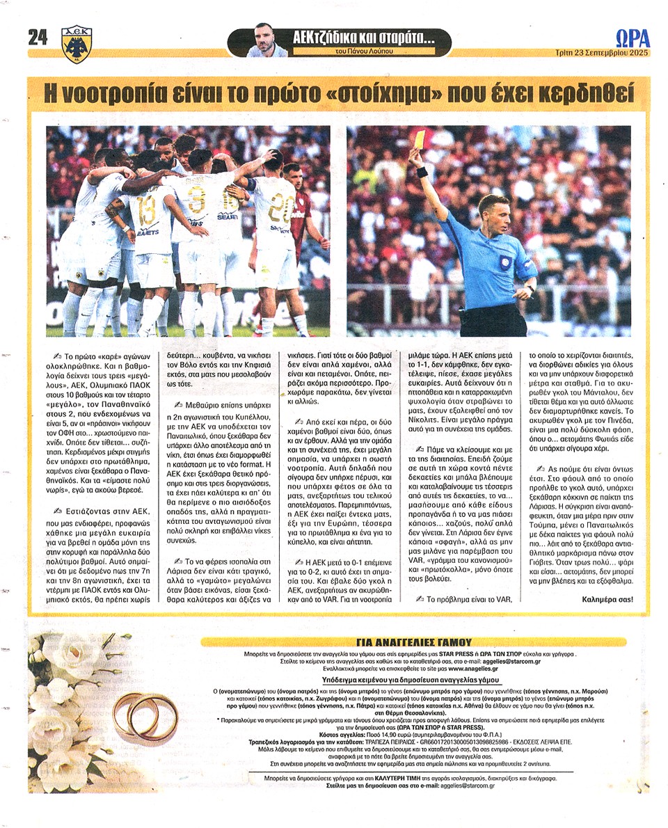 ΑΘΛΗΤΙΚΗ ΩΡΑ ΤΩΝ ΣΠΟΡ - 23 Σεπτεμβρίου 2025