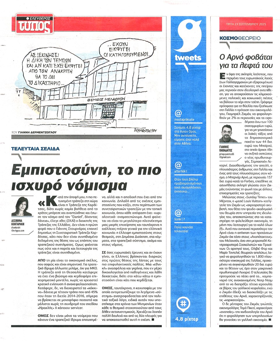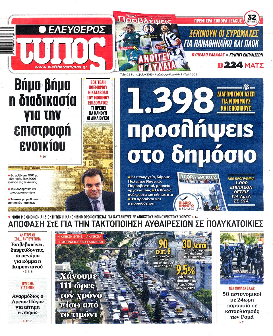 ΕΛΕΥΘΕΡΟΣ ΤΥΠΟΣ - 23 Σεπτεμβρίου 2025