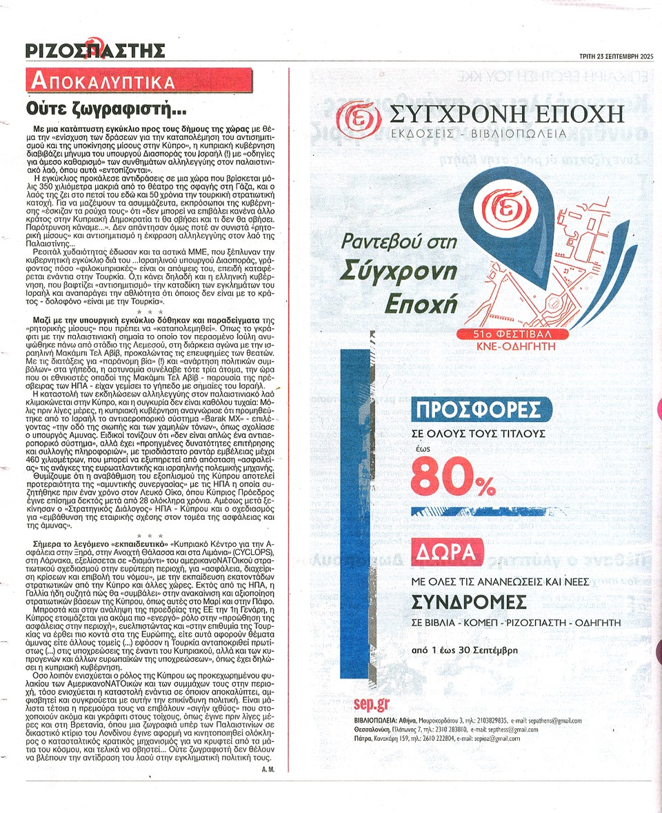 ΡΙΖΟΣΠΑΣΤΗΣ - 23 Σεπτεμβρίου 2025