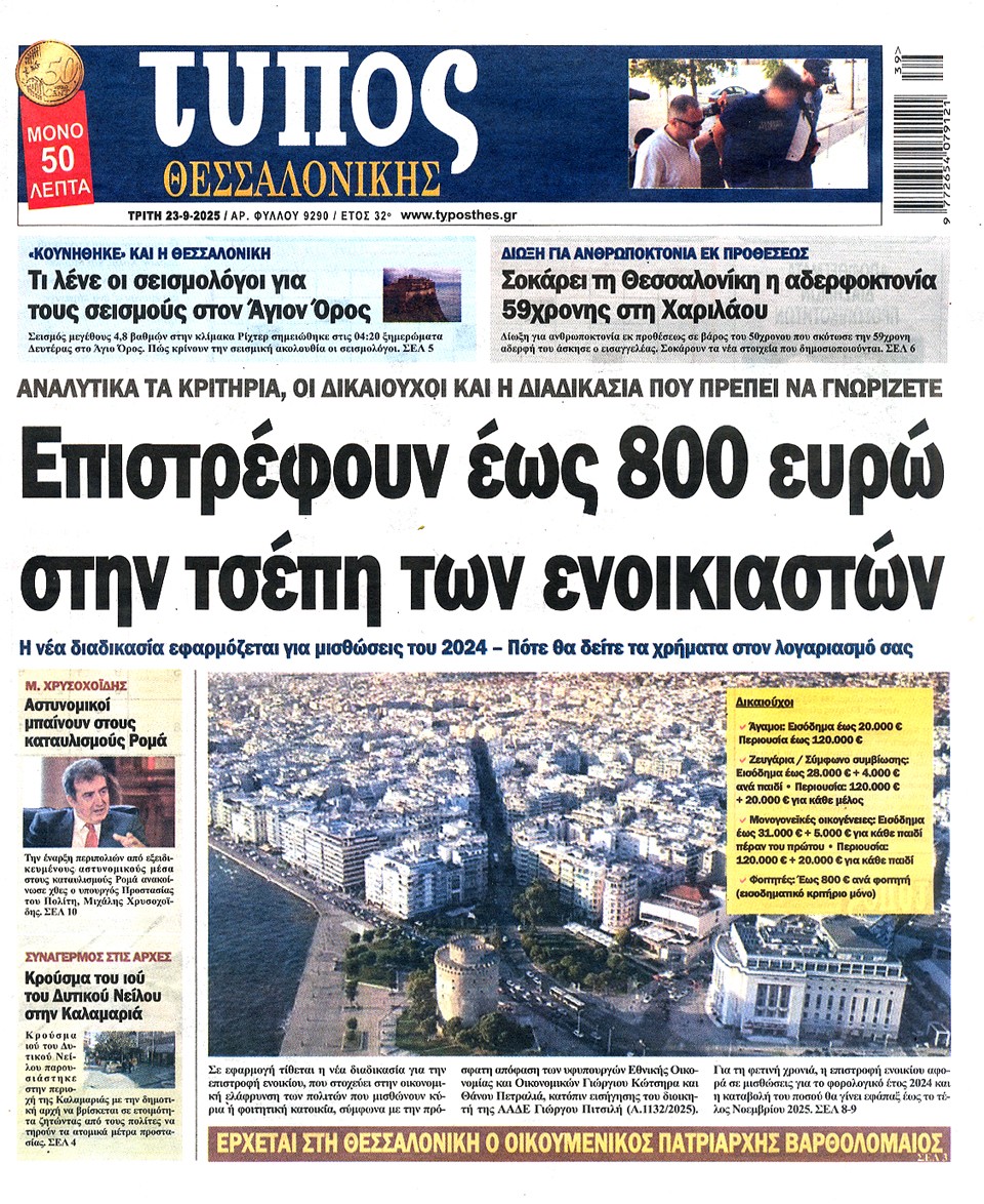 ΤΥΠΟΣ ΘΕΣΣΑΛΟΝΙΚΗΣ - 23 Σεπτεμβρίου 2025