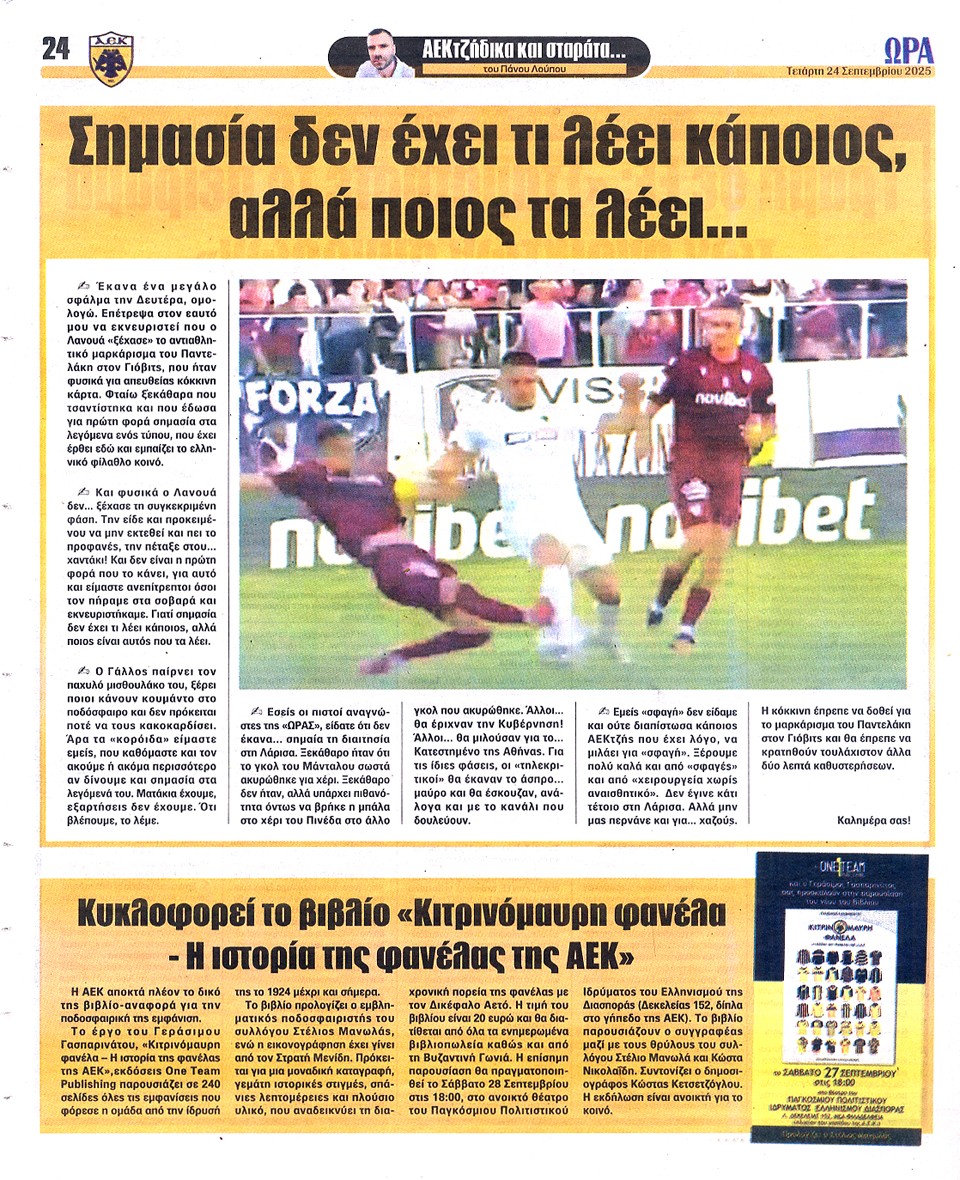 ΑΘΛΗΤΙΚΗ ΩΡΑ ΤΩΝ ΣΠΟΡ - 24 Σεπτεμβρίου 2025