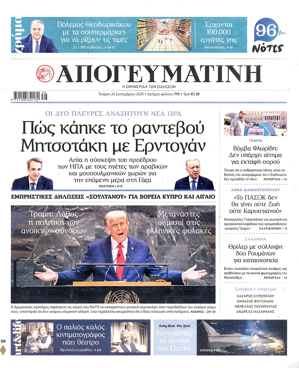 ΑΠΟΓΕΥΜΑΤΙΝΗ - 24 Σεπτεμβρίου 2025