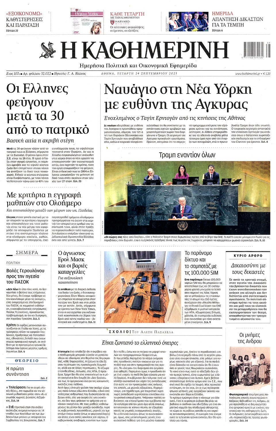 ΚΑΘΗΜΕΡΙΝΗ - 24 Σεπτεμβρίου 2025