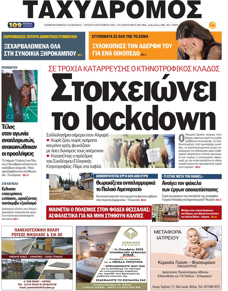 ΤΑΧΥΔΡΟΜΟΣ - 26 Σεπτεμβρίου 2025