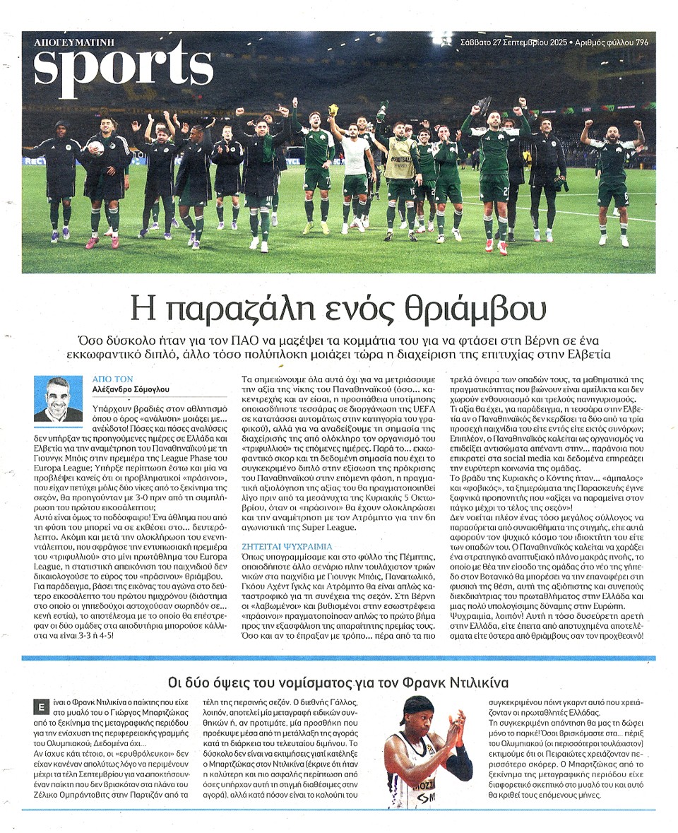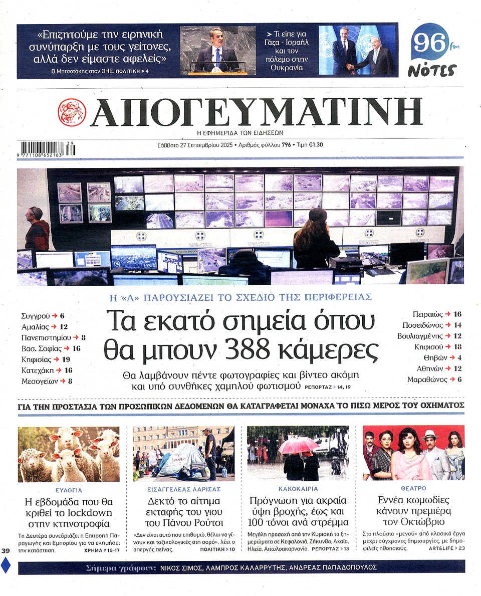 ΑΠΟΓΕΥΜΑΤΙΝΗ - 27 Σεπτεμβρίου 2025
