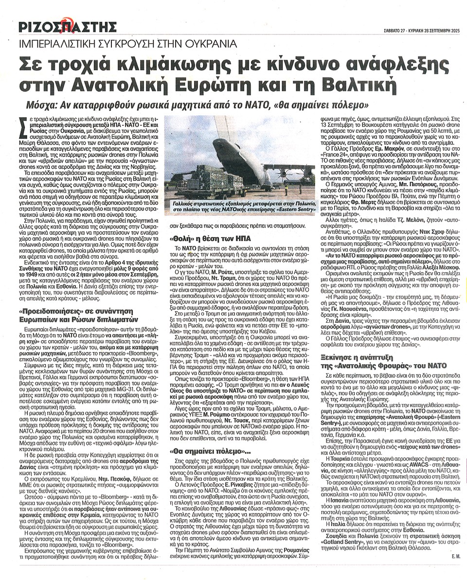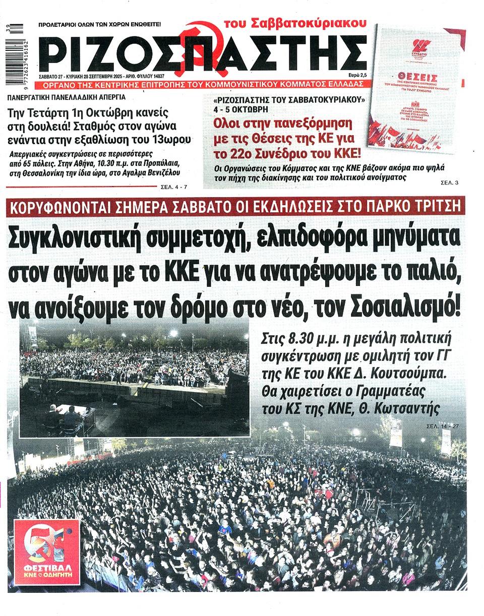 ΡΙΖΟΣΠΑΣΤΗΣ ΤΗΣ ΚΥΡΙΑΚΗΣ - 27 Σεπτεμβρίου 2025