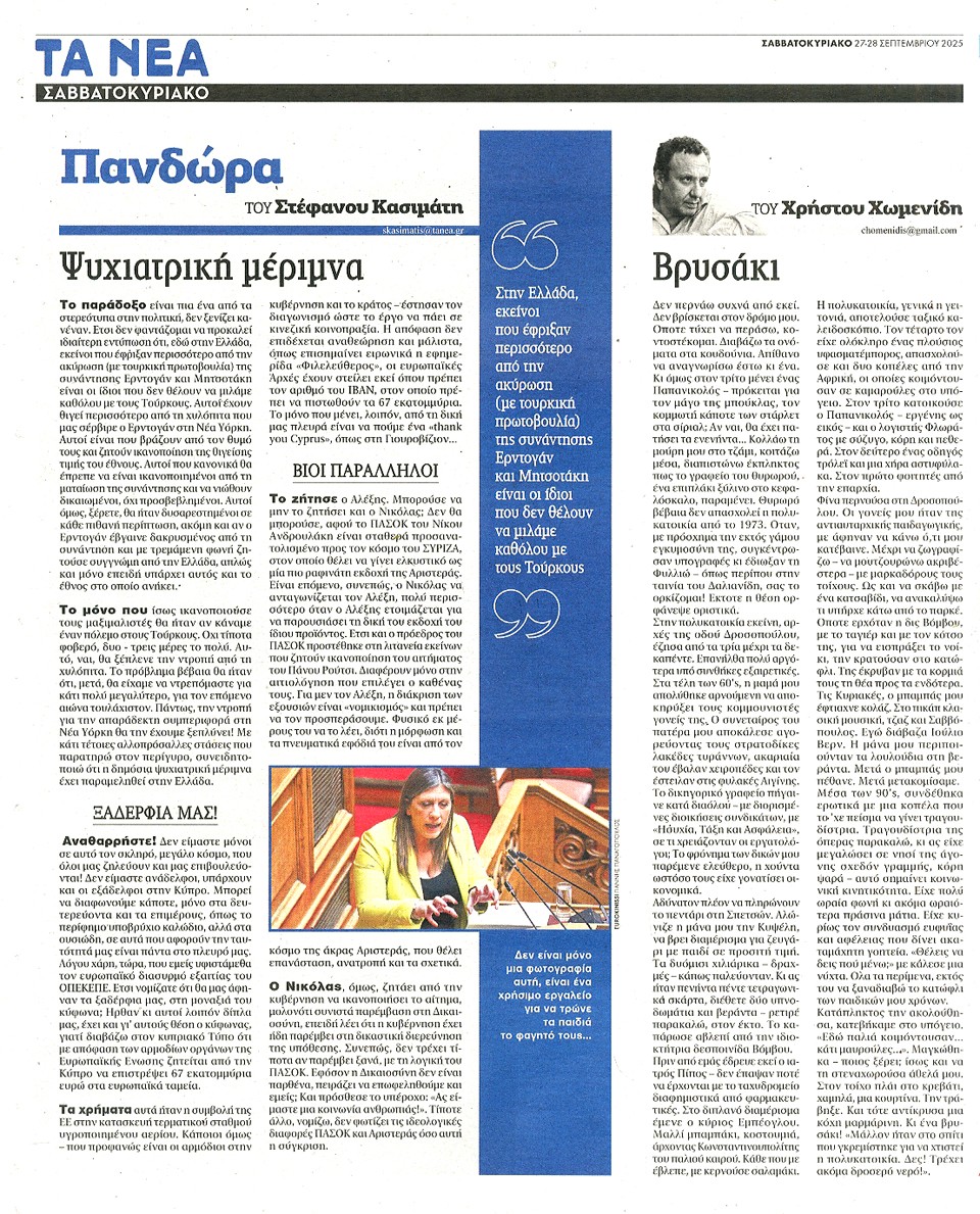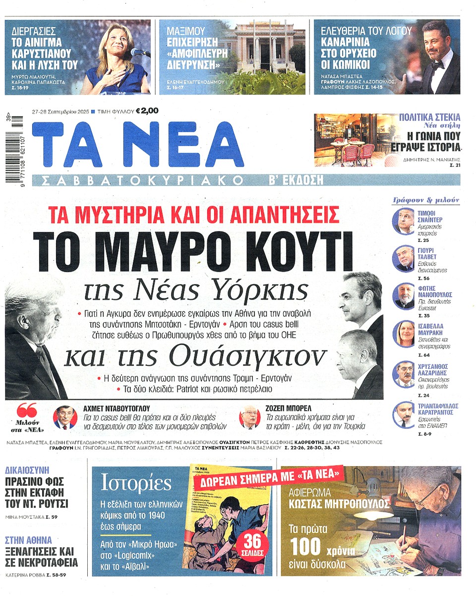 ΤΑ ΝΕΑ - 27 Σεπτεμβρίου 2025