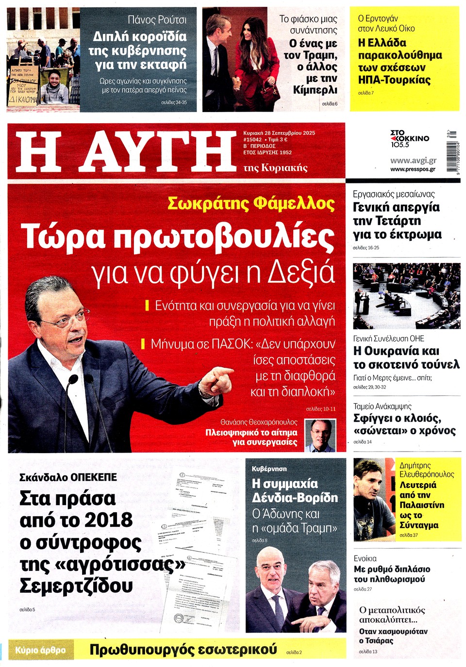 Η ΑΥΓΗ ΤΗΣ ΚΥΡΙΑΚΗΣ - 28 Σεπτεμβρίου 2025