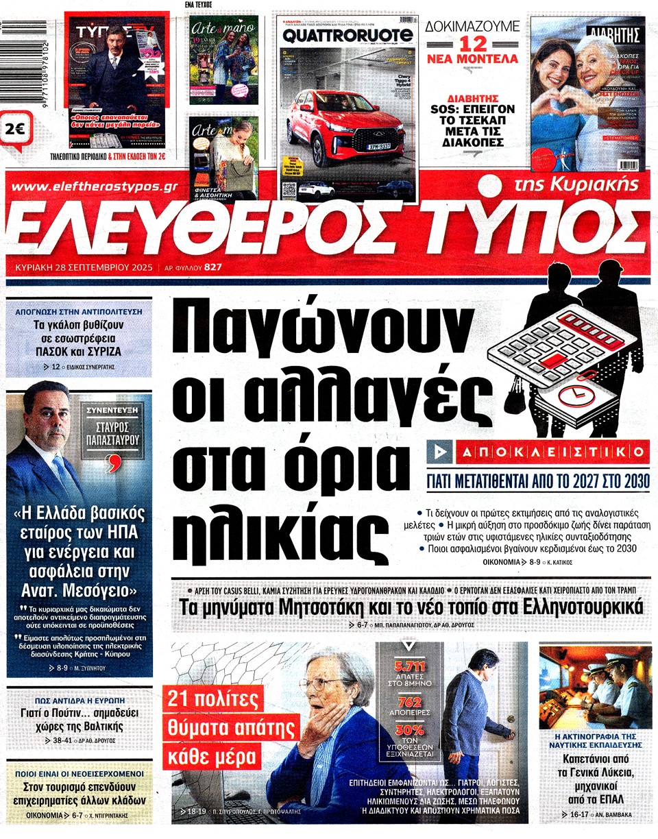 ΤΥΠΟΣ ΤΗΣ ΚΥΡΙΑΚΗΣ - 28 Σεπτεμβρίου 2025