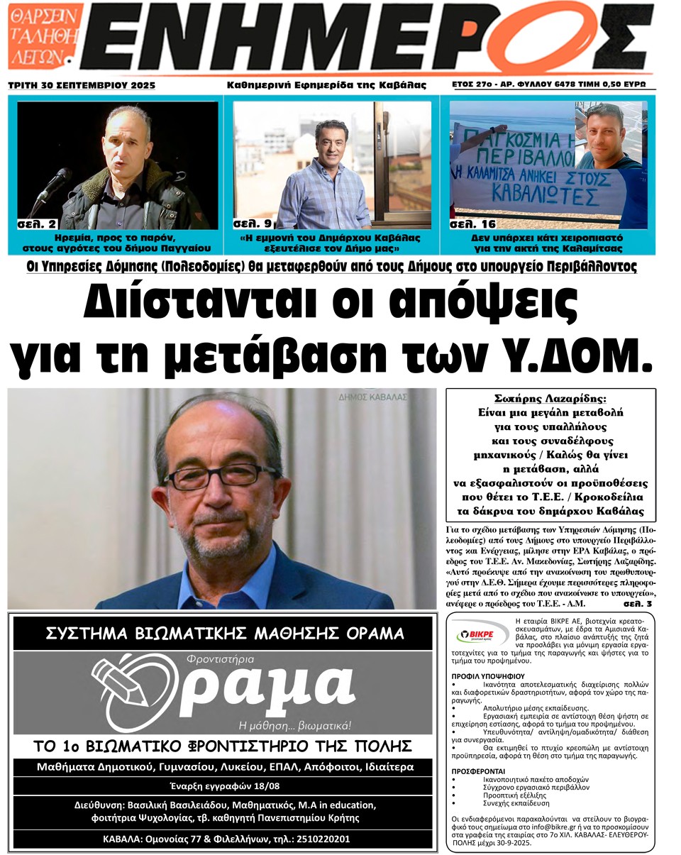 ΕΝΗΜΕΡΟΣ - 30 Σεπτεμβρίου 2025