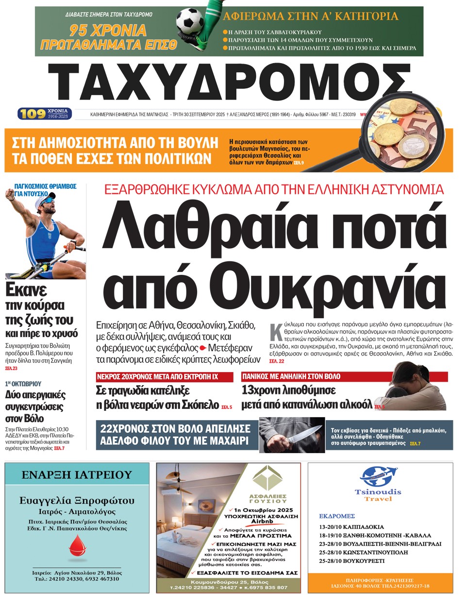 ΤΑΧΥΔΡΟΜΟΣ - 30 Σεπτεμβρίου 2025