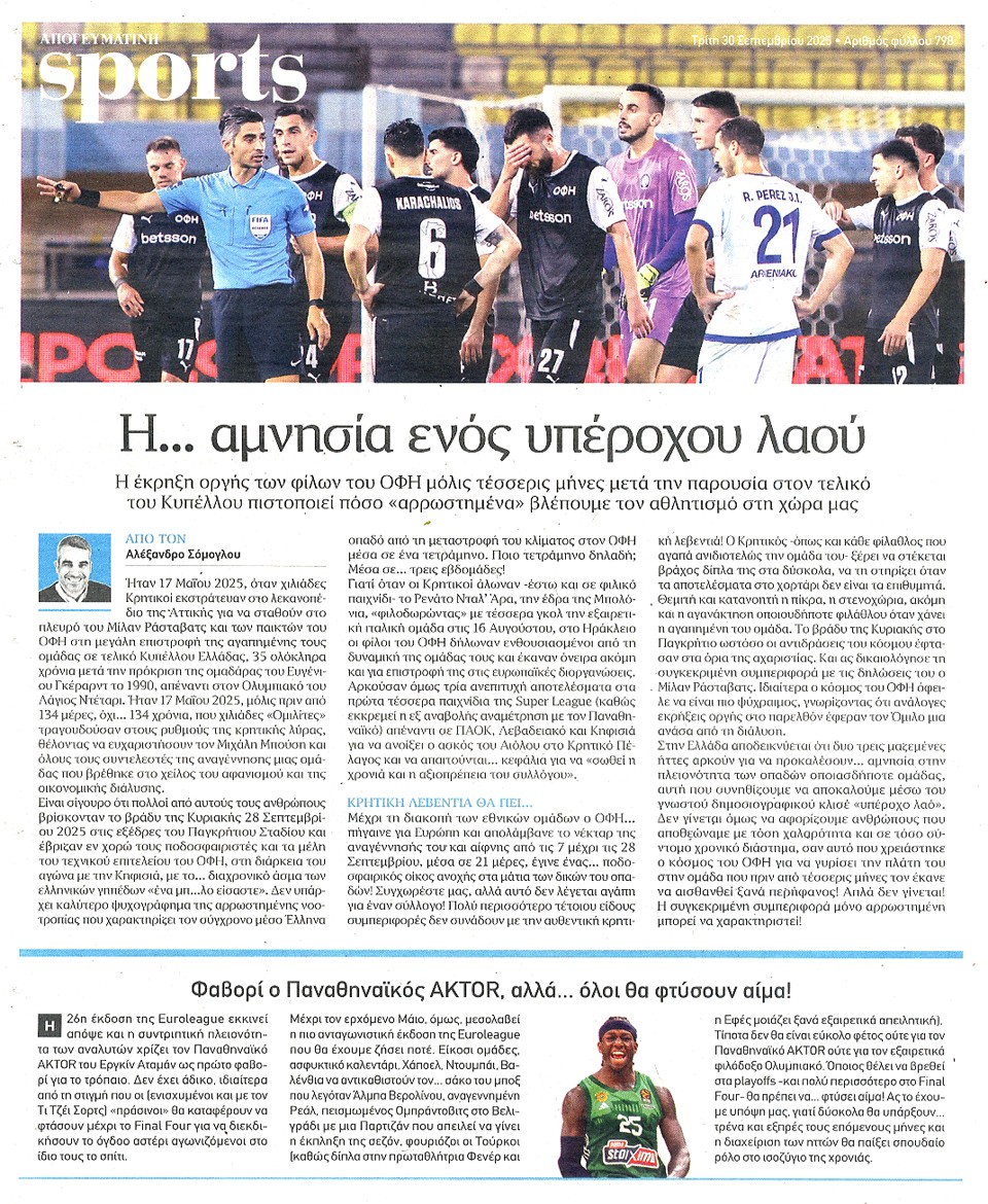 ΑΠΟΓΕΥΜΑΤΙΝΗ - 30 Σεπτεμβρίου 2025