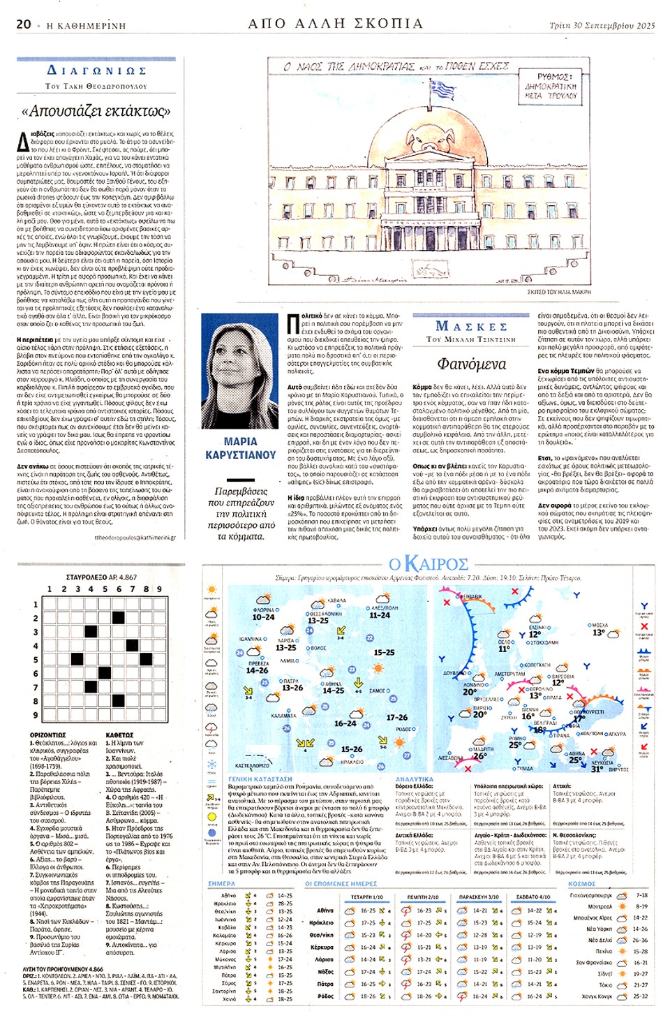 ΚΑΘΗΜΕΡΙΝΗ - 30 Σεπτεμβρίου 2025