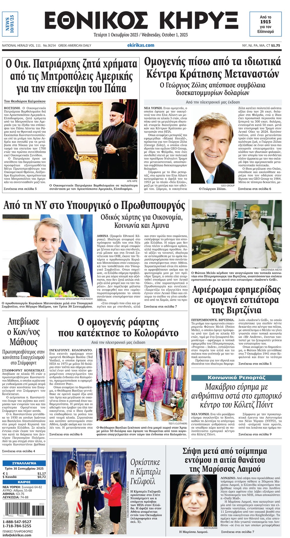 ΕΘΝΙΚΟΣ ΚΗΡΥΞ - 01 Οκτωβρίου 2025