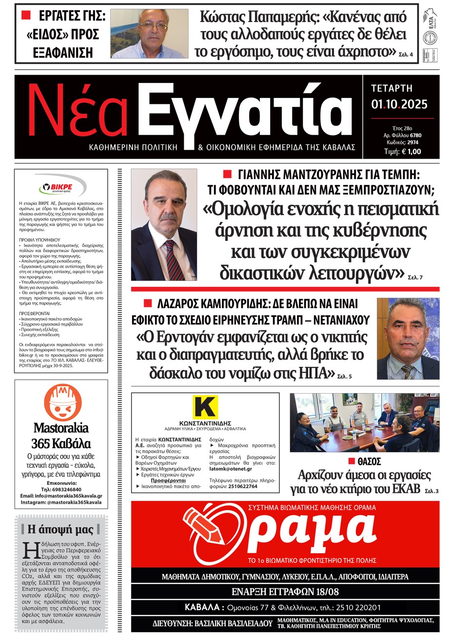 ΝΕΑ ΕΓΝΑΤΙΑ - 01 Οκτωβρίου 2025