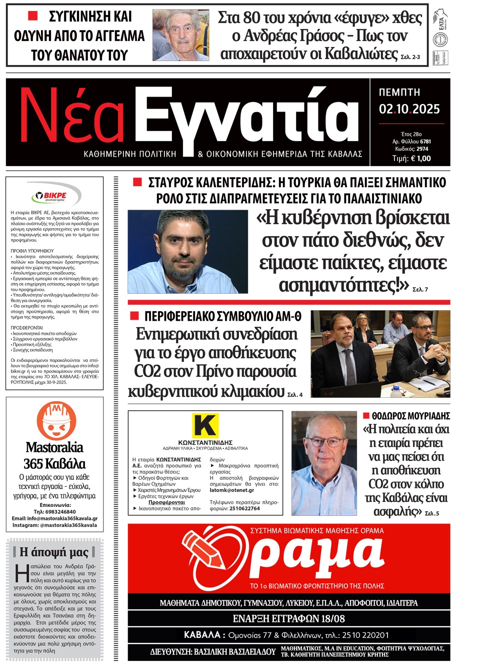ΝΕΑ ΕΓΝΑΤΙΑ - 02 Οκτωβρίου 2025