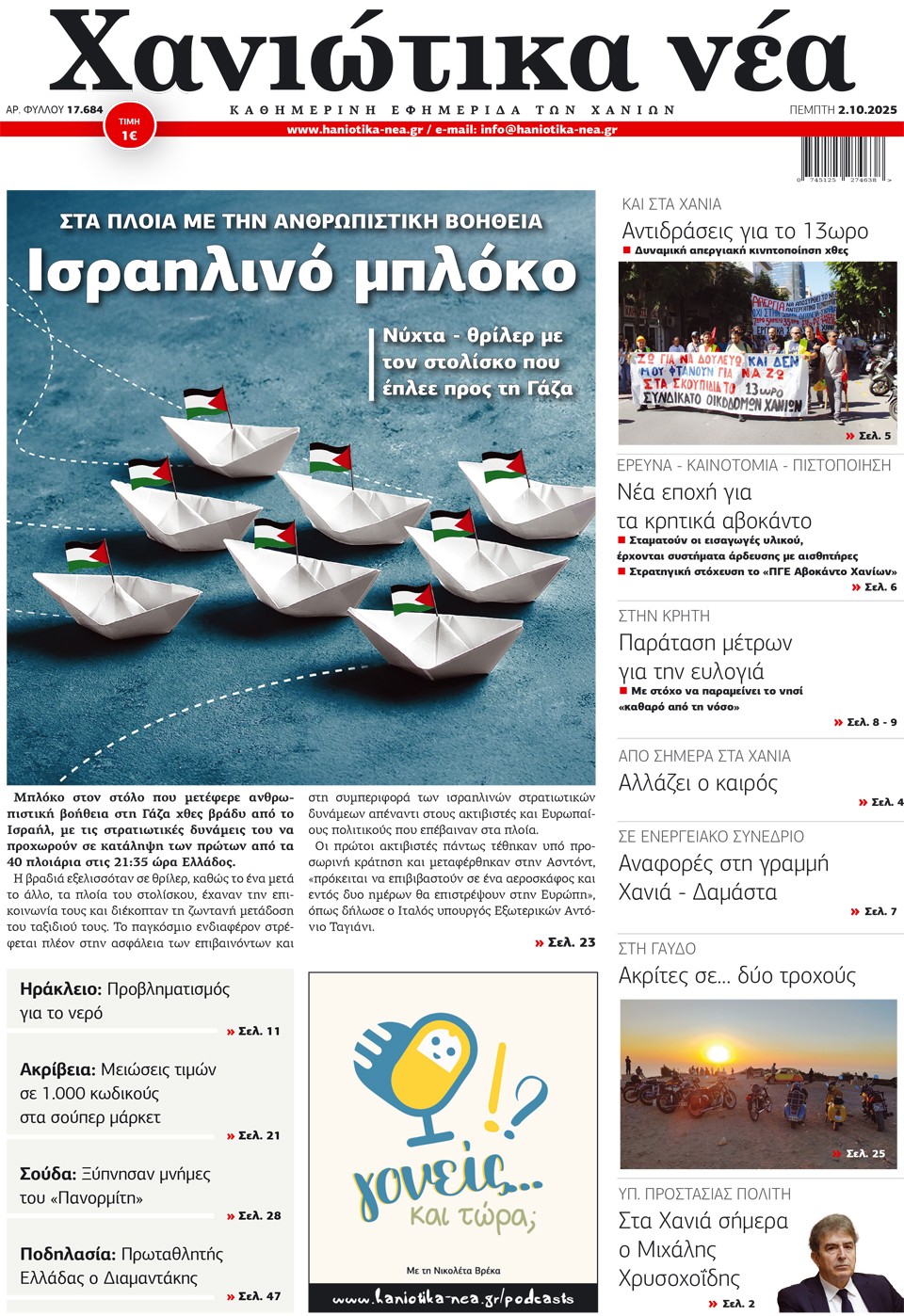 ΧΑΝΙΩΤΙΚΑ ΝΕΑ - 02 Οκτωβρίου 2025