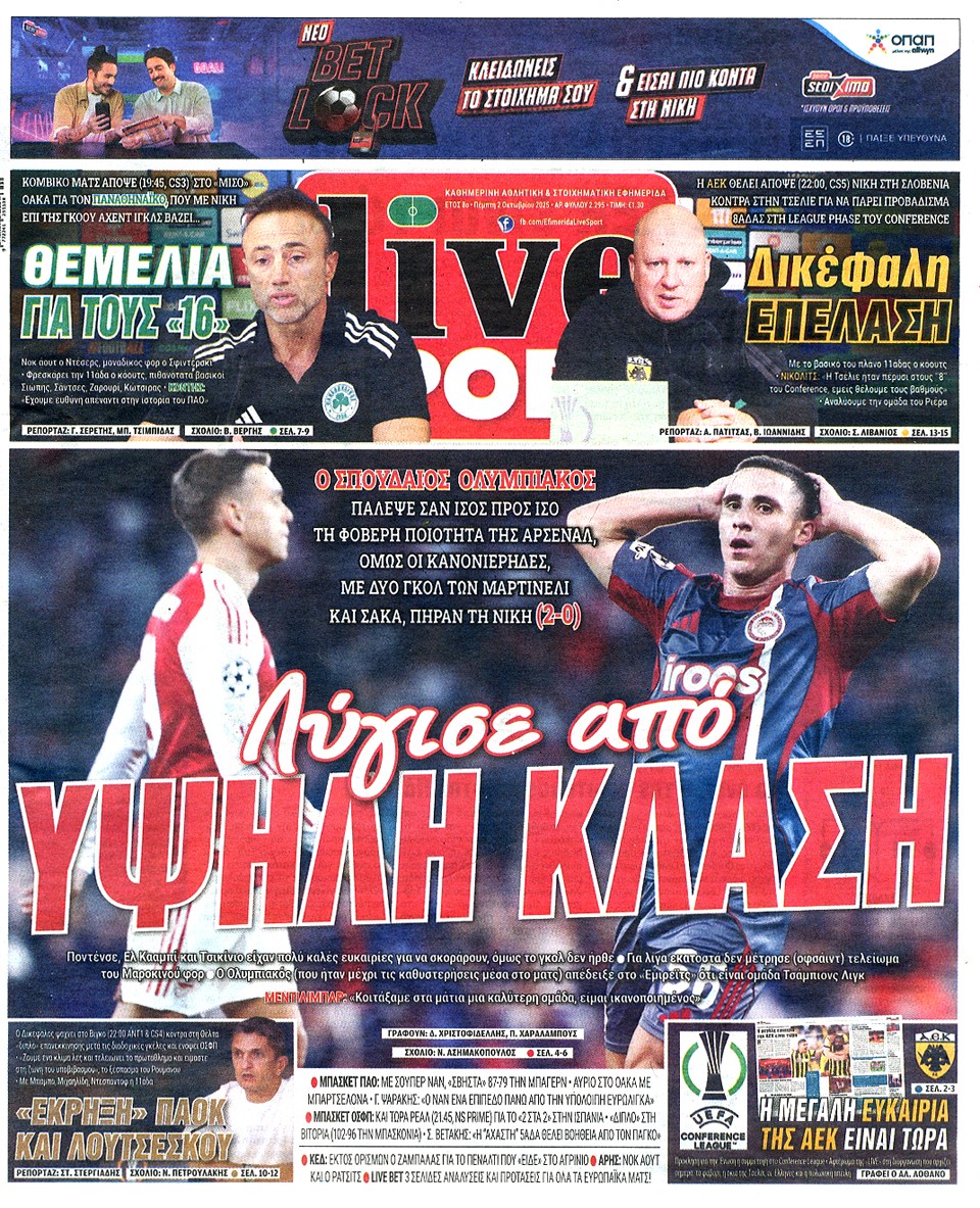 LIVE SPORT - 02 Οκτωβρίου 2025