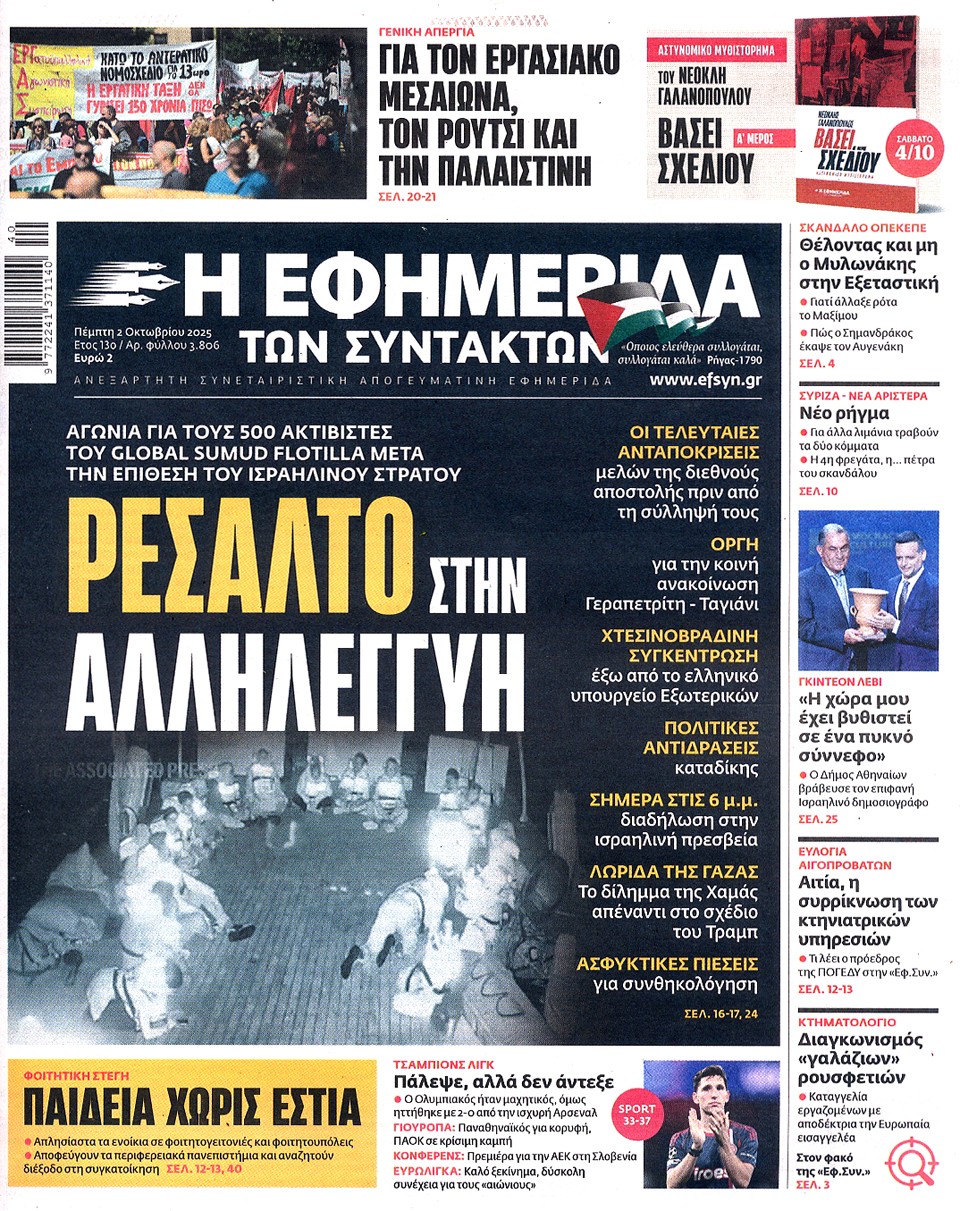 Η ΕΦΗΜΕΡΙΔΑ ΤΩΝ ΣΥΝΤΑΚΤΩΝ - 02 Οκτωβρίου 2025