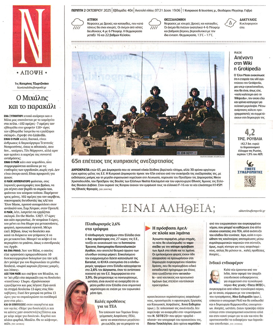 ΝΑΥΤΕΜΠΟΡΙΚΗ - 02 Οκτωβρίου 2025