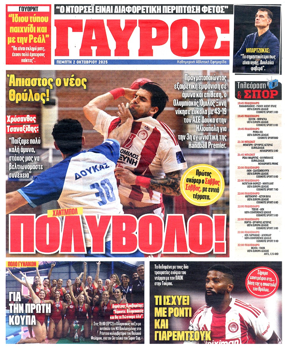 ΠΡΩΤΑΘΛΗΤΗΣ - 02 Οκτωβρίου 2025