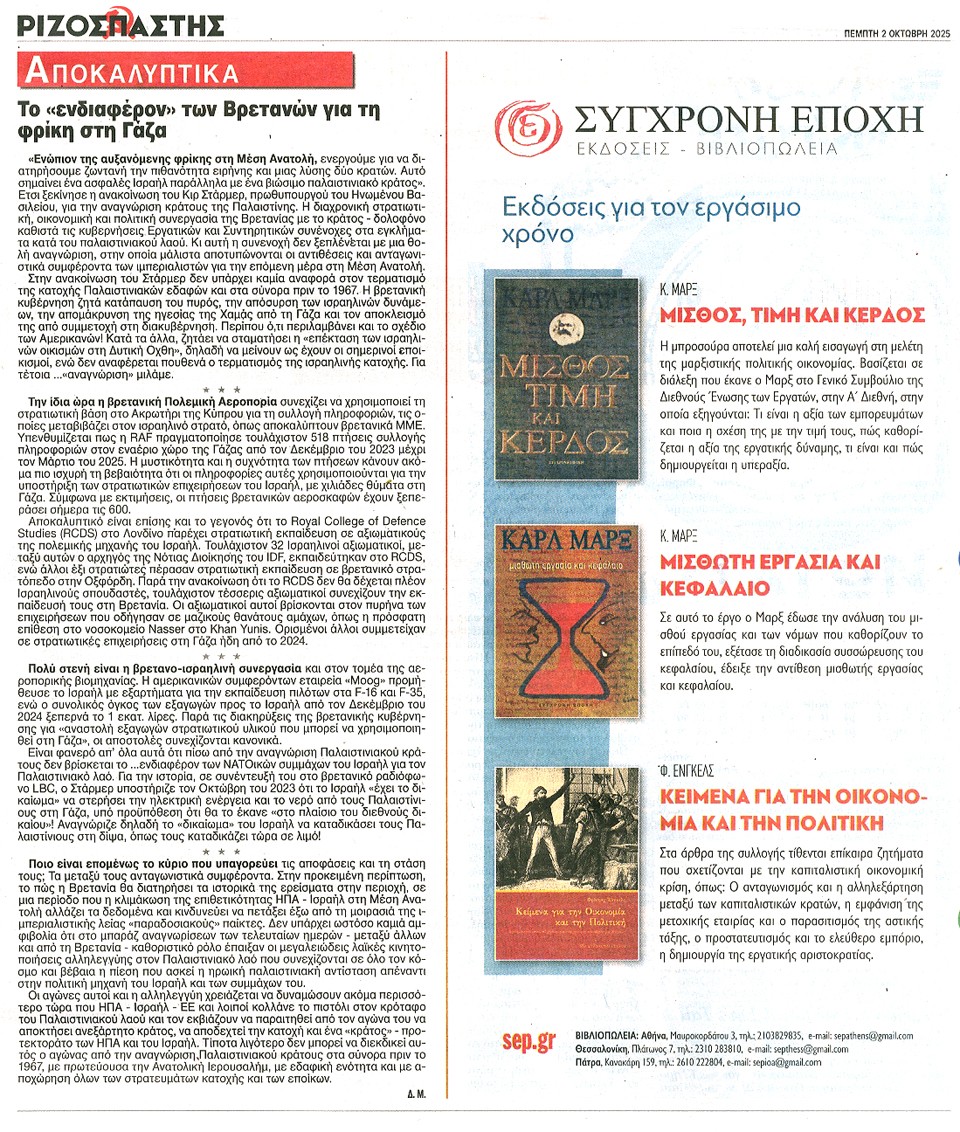 ΡΙΖΟΣΠΑΣΤΗΣ - 02 Οκτωβρίου 2025