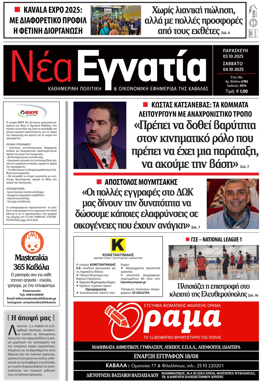 ΝΕΑ ΕΓΝΑΤΙΑ - 03 Οκτωβρίου 2025