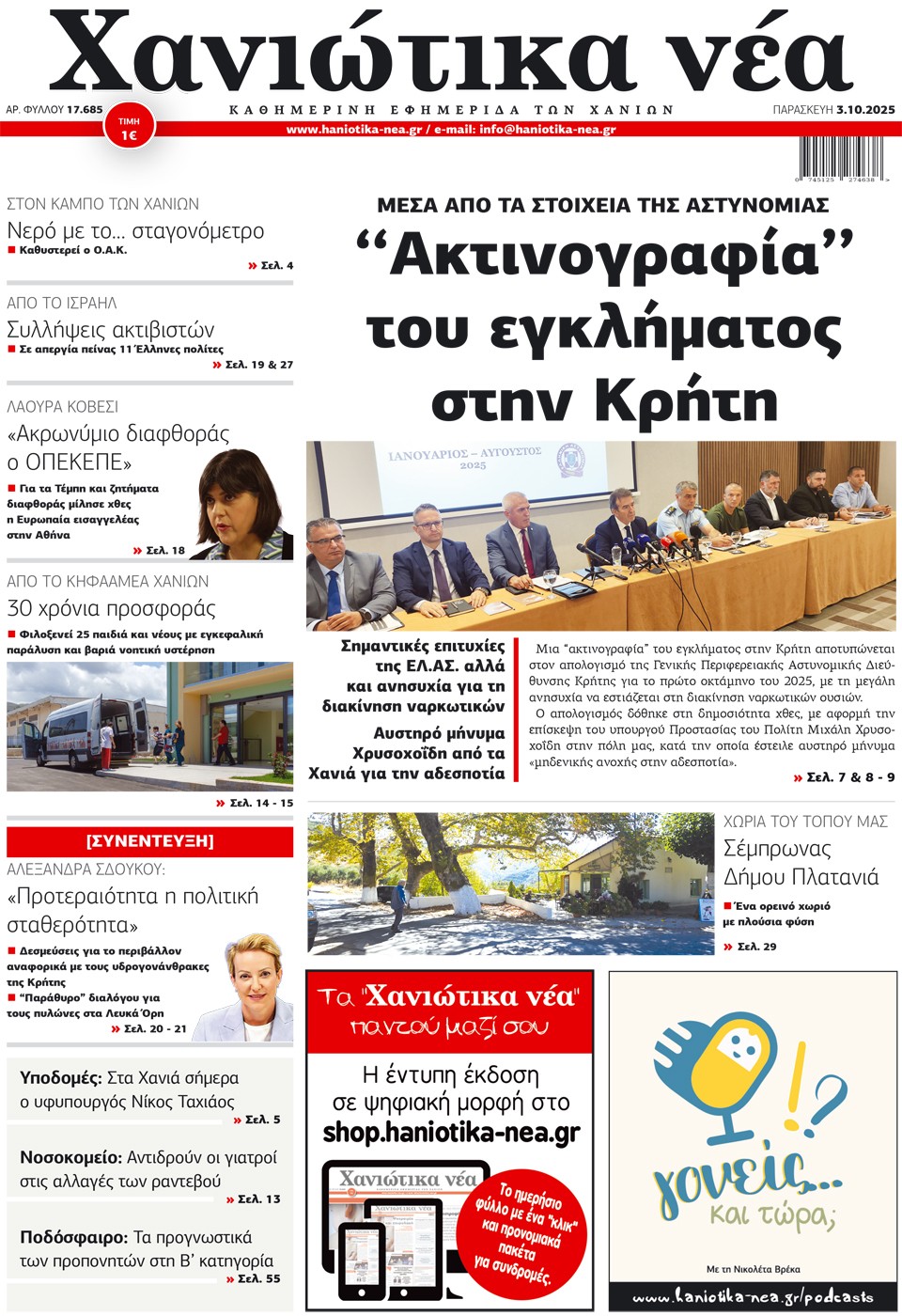 ΧΑΝΙΩΤΙΚΑ ΝΕΑ - 03 Οκτωβρίου 2025