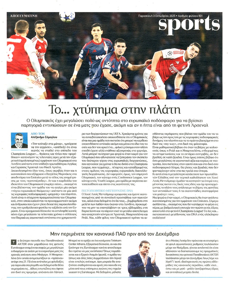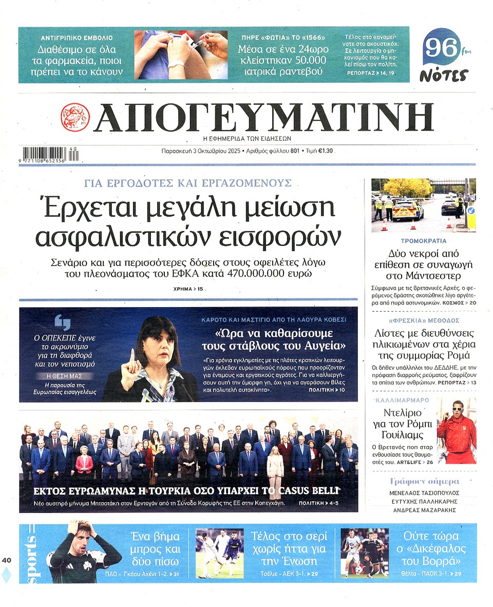 ΑΠΟΓΕΥΜΑΤΙΝΗ - 03 Οκτωβρίου 2025