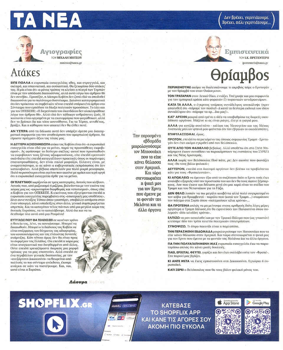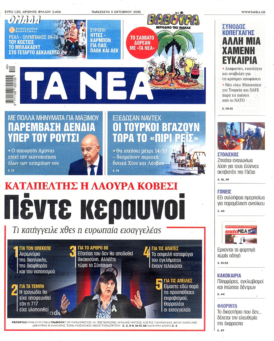ΤΑ ΝΕΑ - 03 Οκτωβρίου 2025
