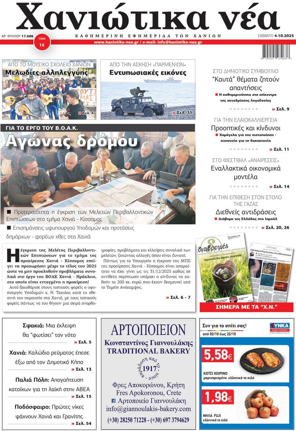 ΧΑΝΙΩΤΙΚΑ ΝΕΑ - 04 Οκτωβρίου 2025