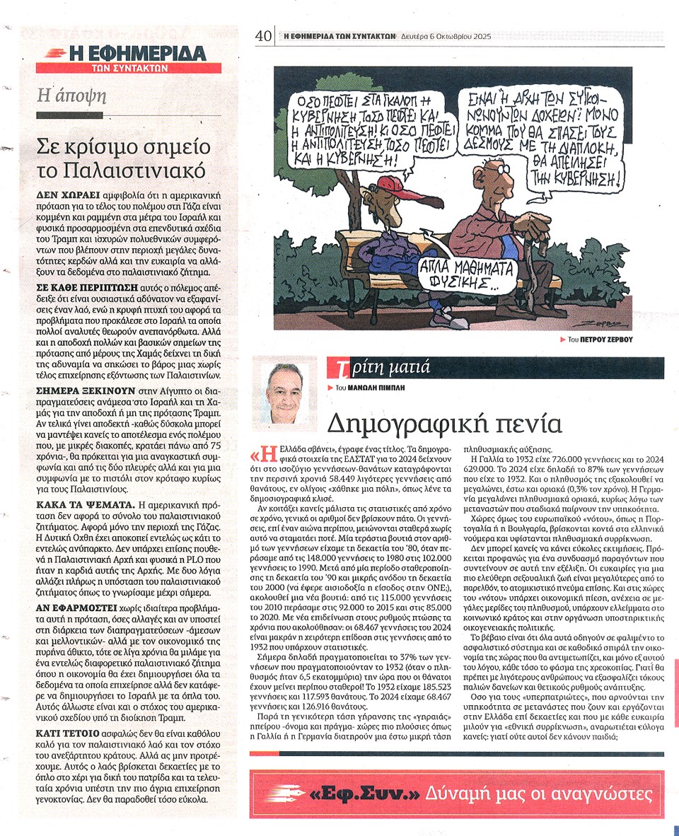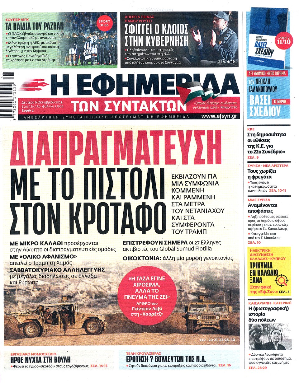 Η ΕΦΗΜΕΡΙΔΑ ΤΩΝ ΣΥΝΤΑΚΤΩΝ - 06 Οκτωβρίου 2025