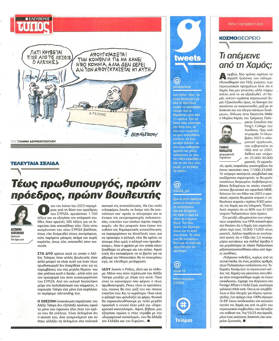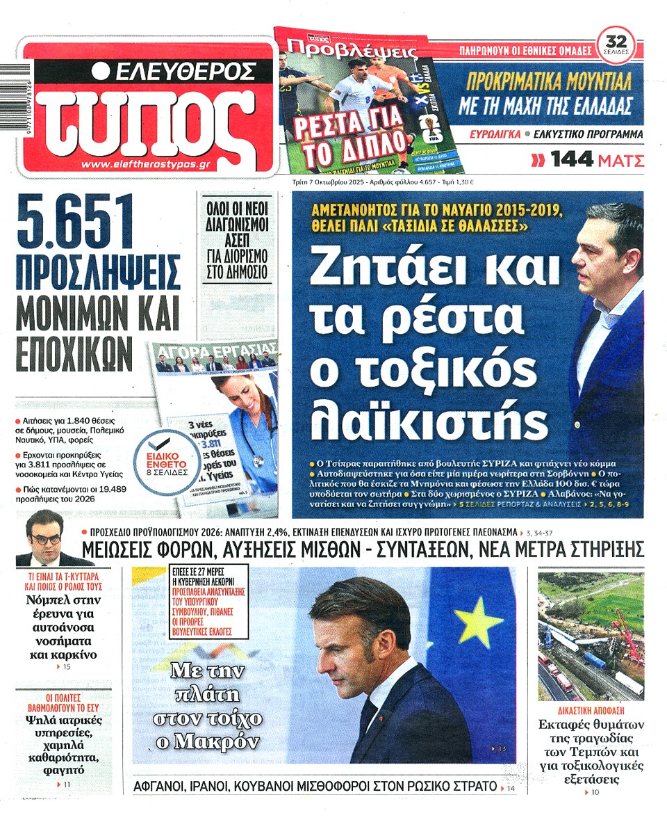 ΕΛΕΥΘΕΡΟΣ ΤΥΠΟΣ - 07 Οκτωβρίου 2025