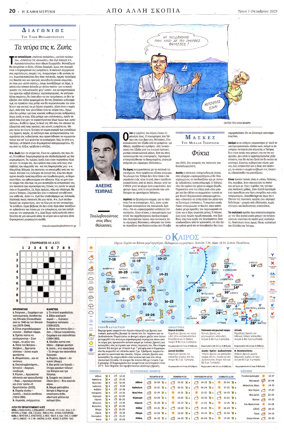 ΚΑΘΗΜΕΡΙΝΗ - 07 Οκτωβρίου 2025