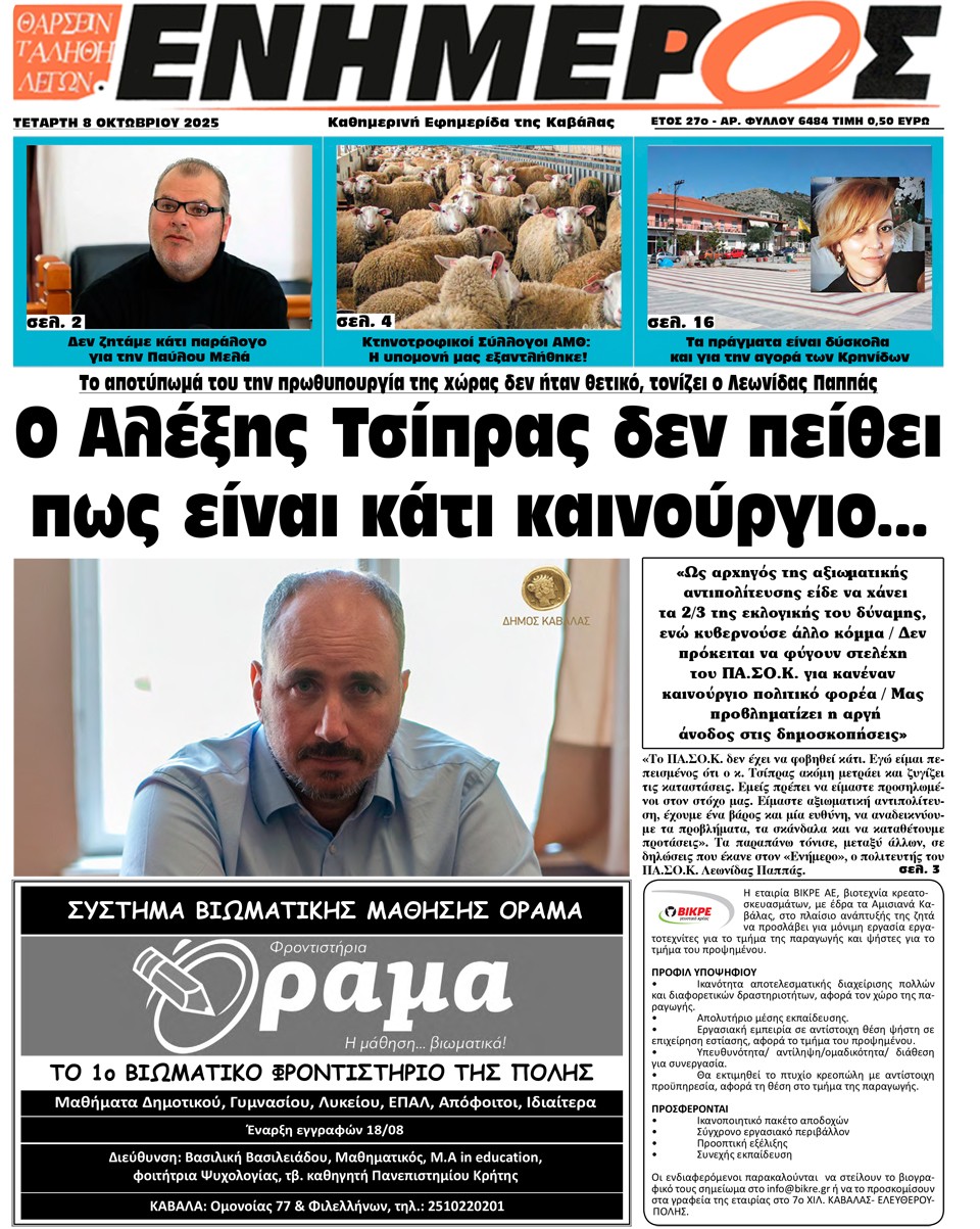 ΕΝΗΜΕΡΟΣ - 08 Οκτωβρίου 2025