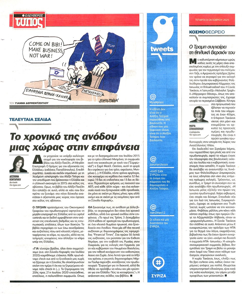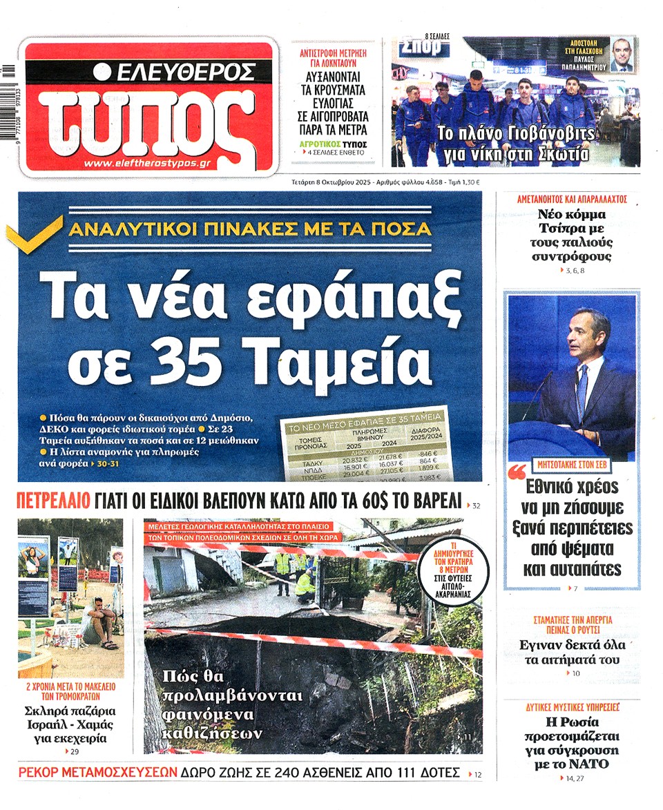 ΕΛΕΥΘΕΡΟΣ ΤΥΠΟΣ - 08 Οκτωβρίου 2025