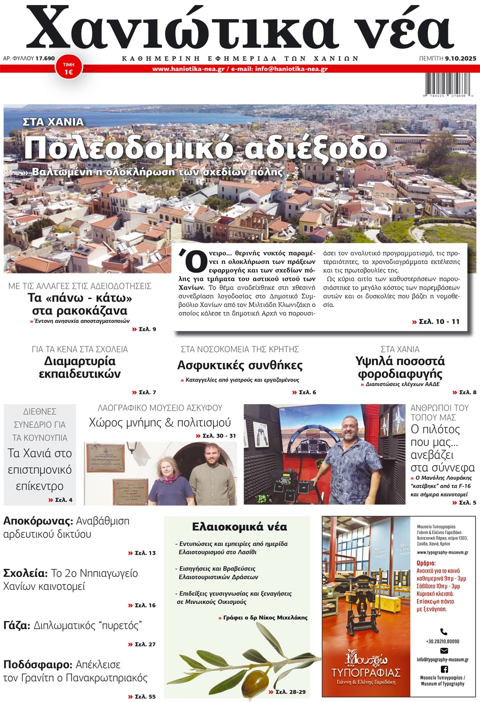 ΧΑΝΙΩΤΙΚΑ ΝΕΑ - 09 Οκτωβρίου 2025